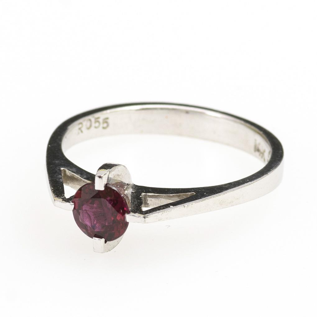 Weißgold 585 gestempelt. Ringgröße 53. Rubin 0,55 ct. 2,7 g.