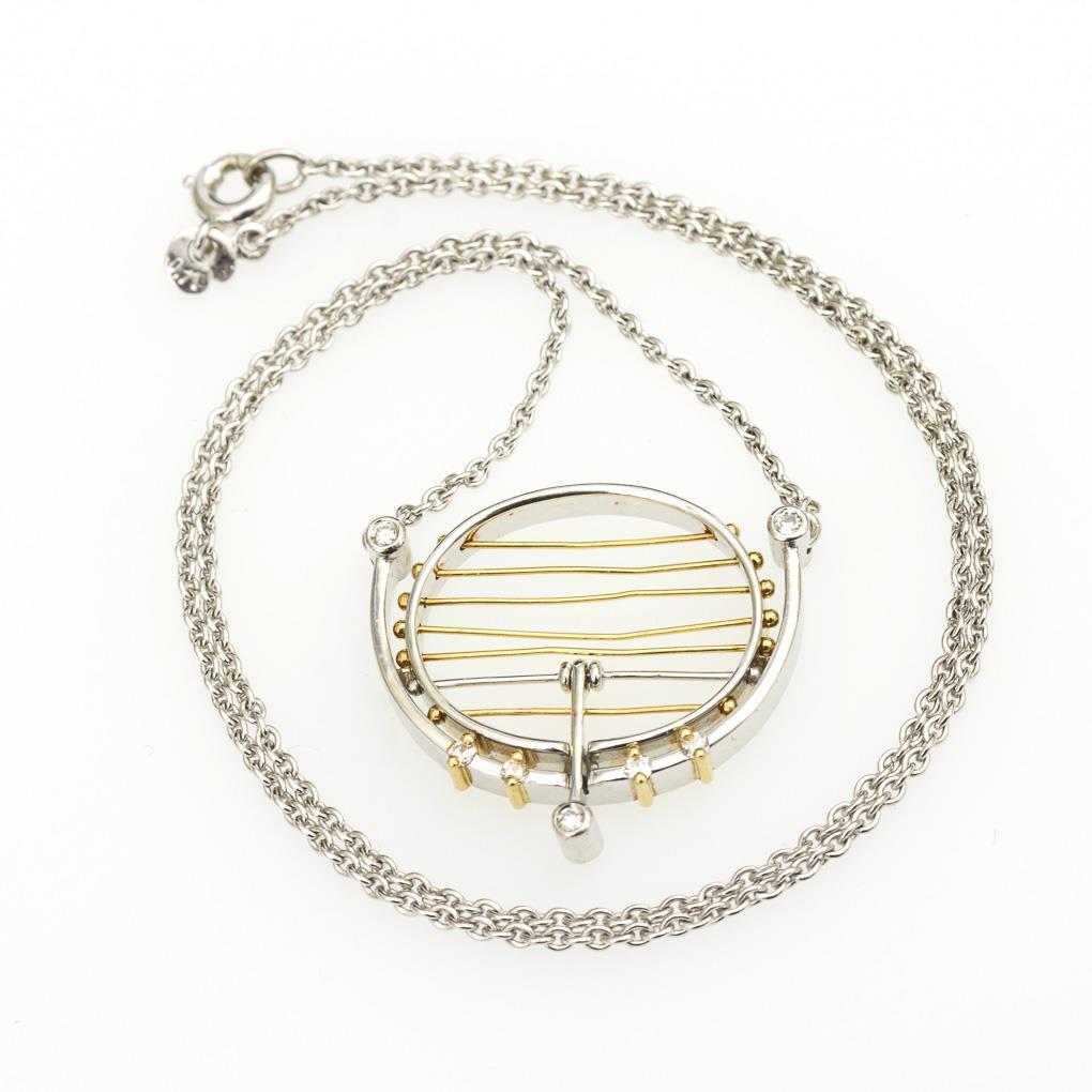 Weißgold/Gelbgold 750 gestempelt. Punze: CADEAUX. Anhänger 2,4 x 2,2 cm. Kette L 40 cm. 7,4 g.