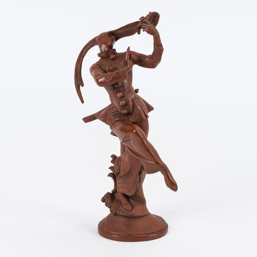 Schreitender Tänzer, eine Maske in der linken Hand betrachtend, nach einer Figur aus E. T. A. Hoffmanns Erzählungen und einem Stich von Jacques Callot (1592-1735).