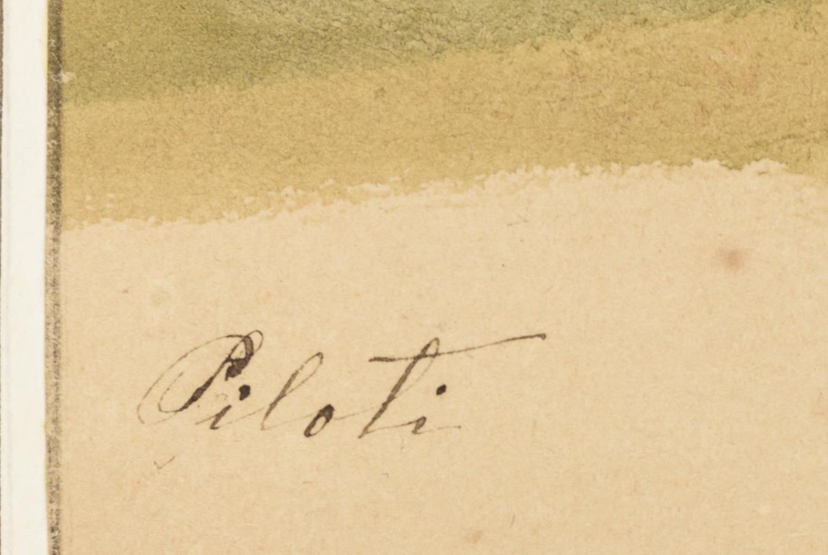 Je Aquarell. Links unten als "Piloti" signiert, rechts unten mit "S.v. Eichrhat" signiert. Einmal datiert: März 1872.