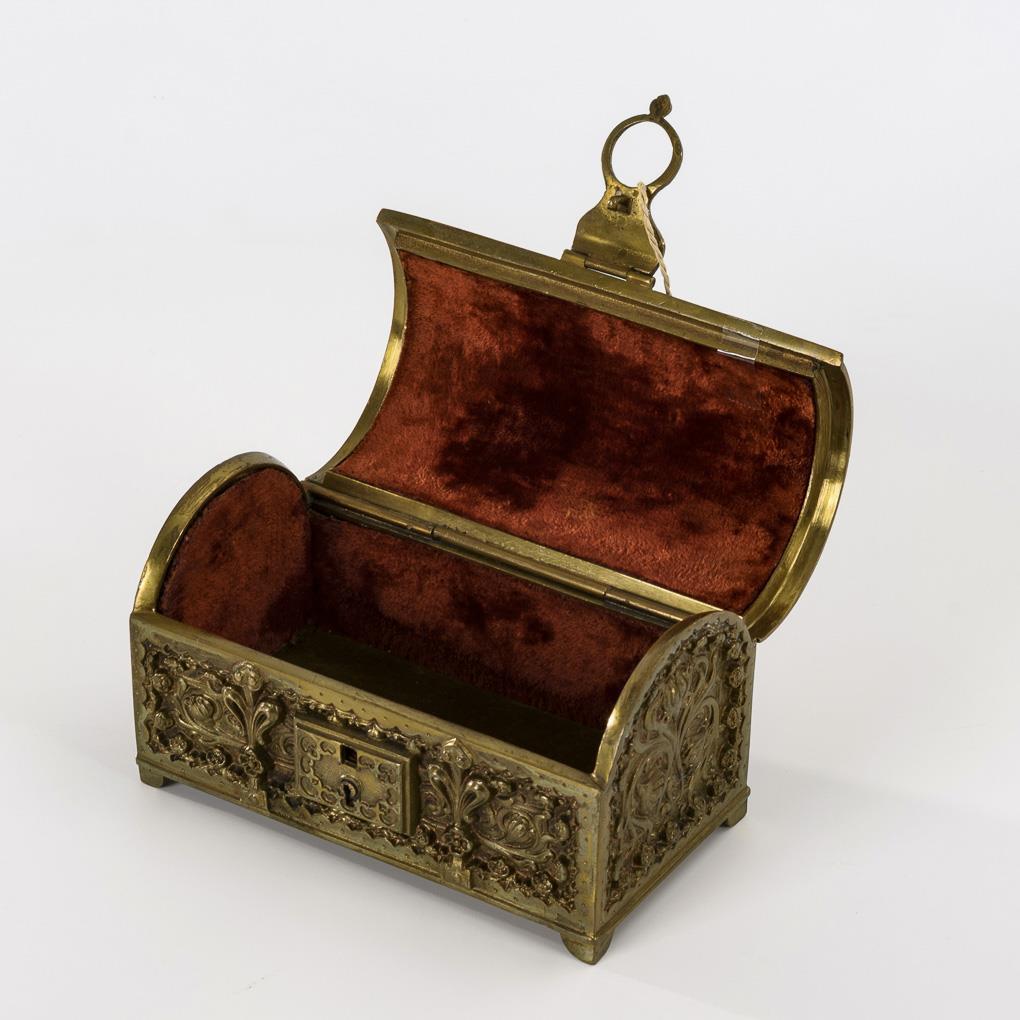 Bronze, innen roter Samt. 10 x 16 x 9 cm.