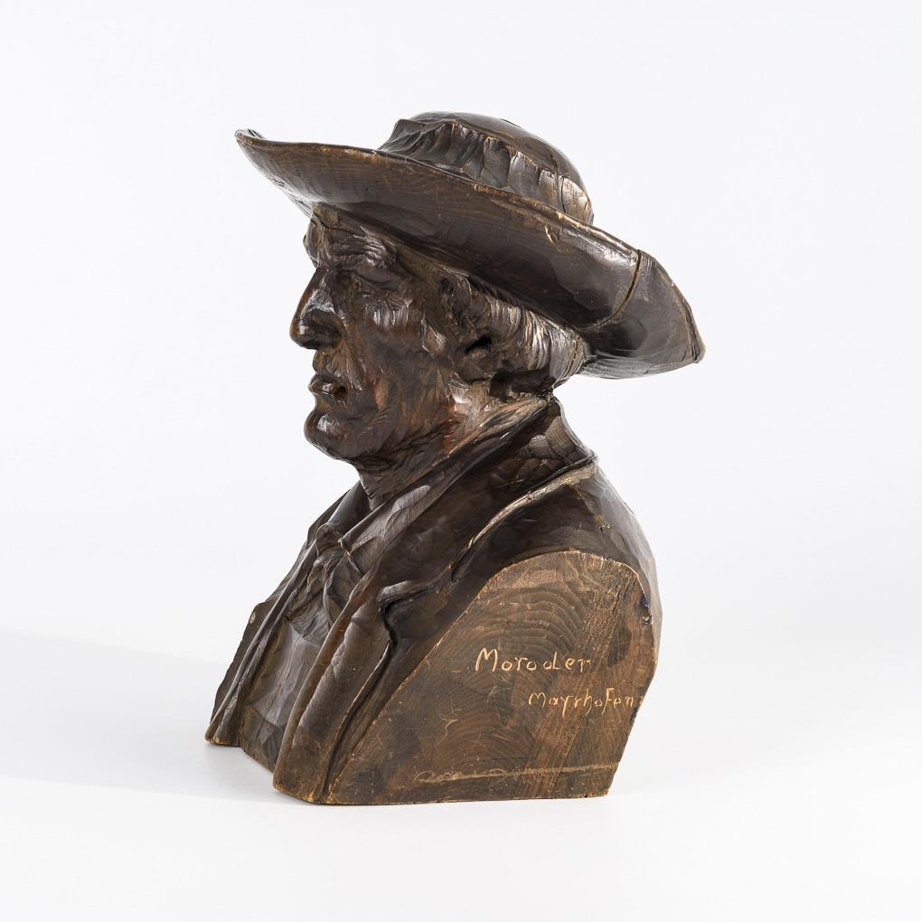 Nadelholz dunkel gebeizt. "Moroder Mayrhofen" signiert. H 24 cm.