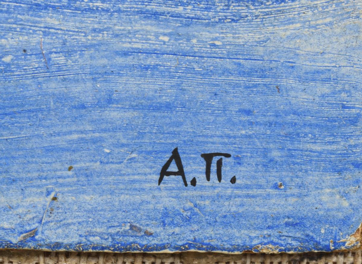 Tempera/Malkarton. Rechts unten monogrammiert, verso kyrillisch bezeichnet.