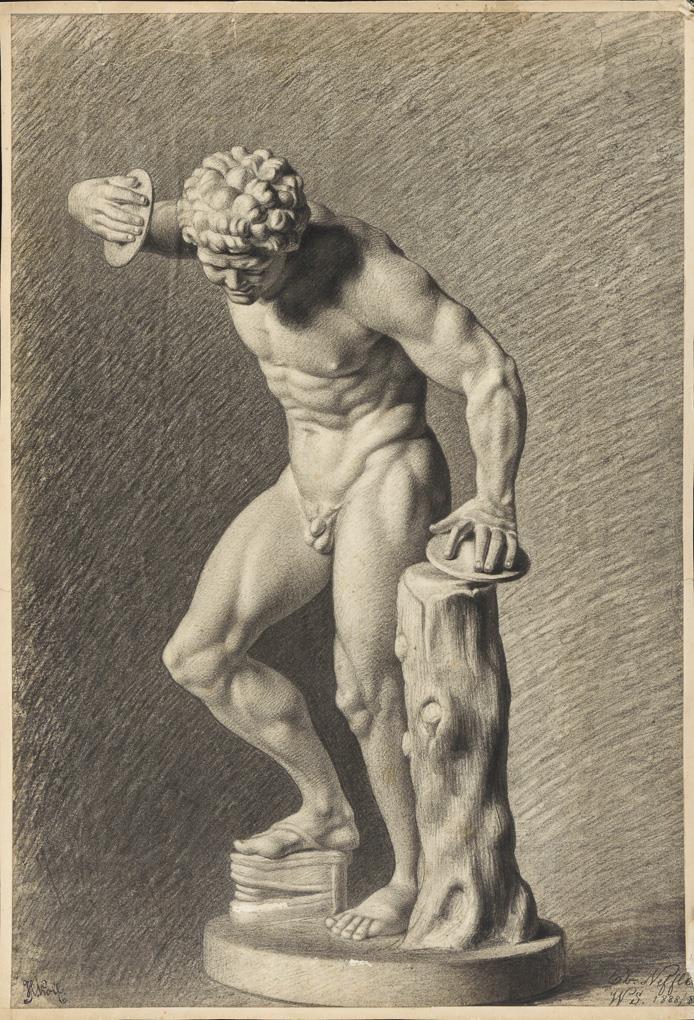 Kohlezeichnung. Bleistiftsignatur, Stempelsignatur. Datiert "WS 1888/89".