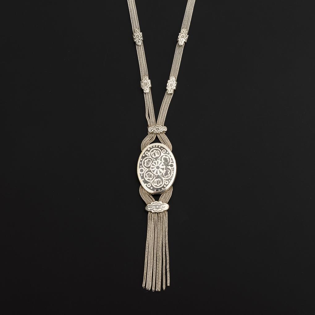 Silber 925 gestempelt. L 59 cm. Anhänger 11 x 2,6 cm. 54,6 g.