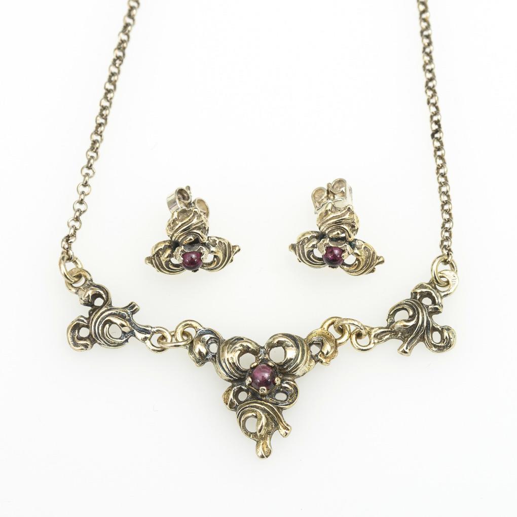 Collier und Ohrsteckerpaar mit Granaten.