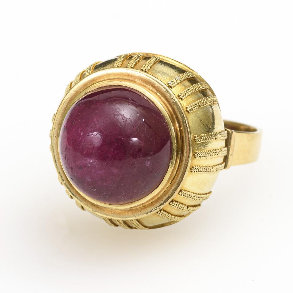 Ring mit rosafarbenem Turmalin und Granalien 1930er Jahre.