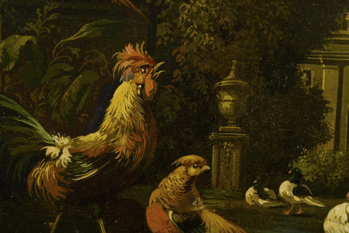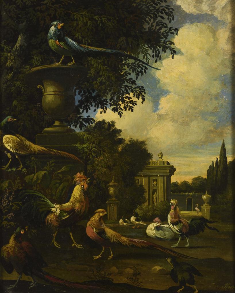 Undeutlich signiert: Geflügel nahe herrschaftlicher Villa