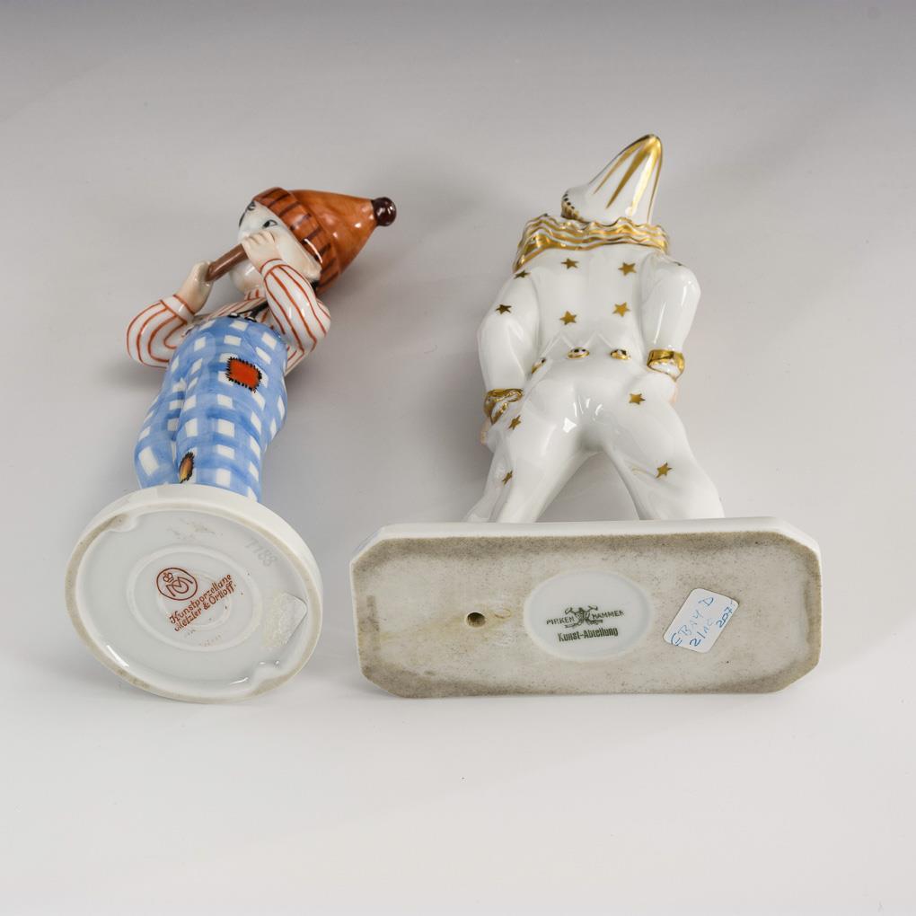 1x gemarkt Pirkenhammer, Modell-Nr. 4079: Knabe als Pierrot. / 1x gemarkt Metzler & Ortloff, Modell-Nr. 7188: eine Mundharmonika spielender Knabe mit Pudelmütze.