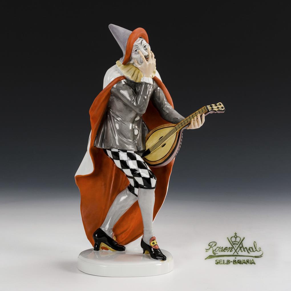 Pierrot mit Mandoline und Hut. Linke Hand mit Mandolinenhals restauriert.