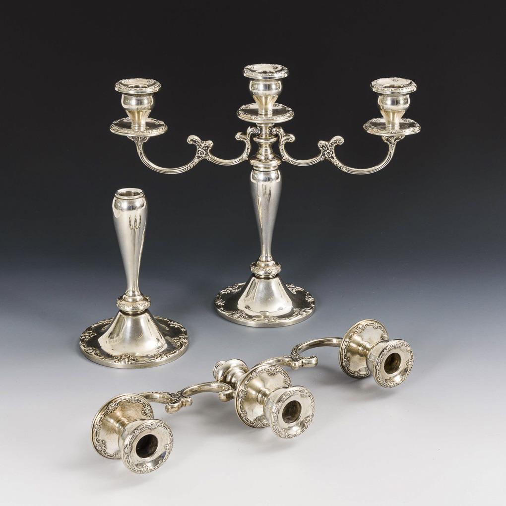 Paar 3-flammige Silberleuchter. Gorham.