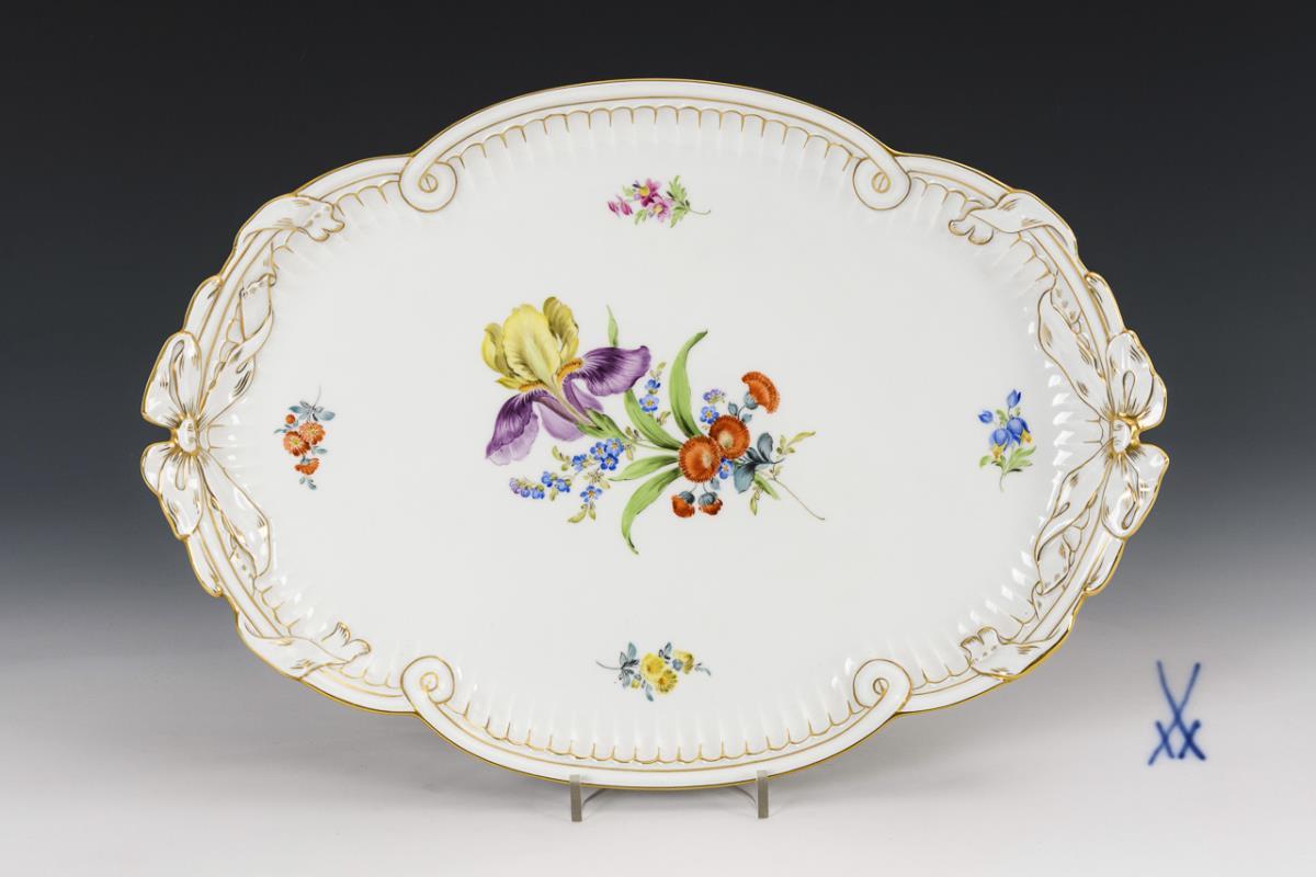 Schleifenplatte mit Blumenmalerei. Meissen.