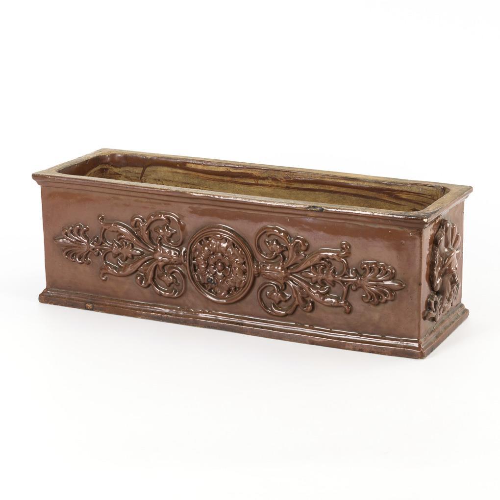 Rechteckiger Blumenkasten mit historistischem Reliefdekor.
