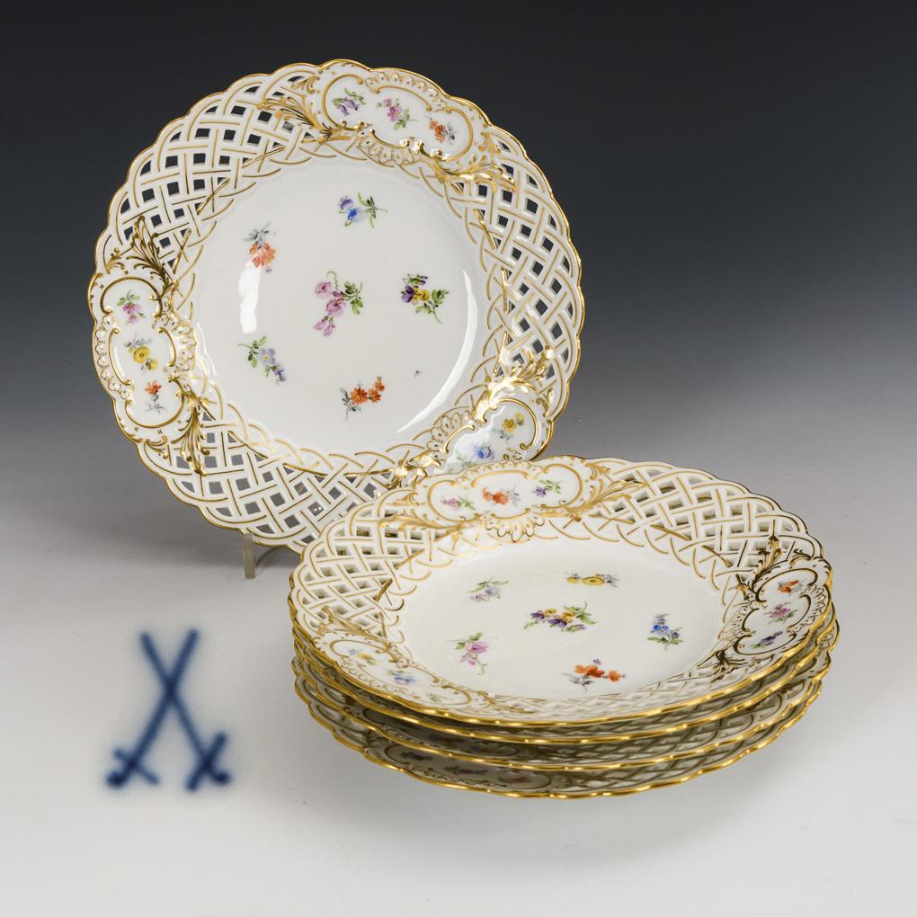 5 Durchbruchteller mit Blumenmalerei. Meissen.