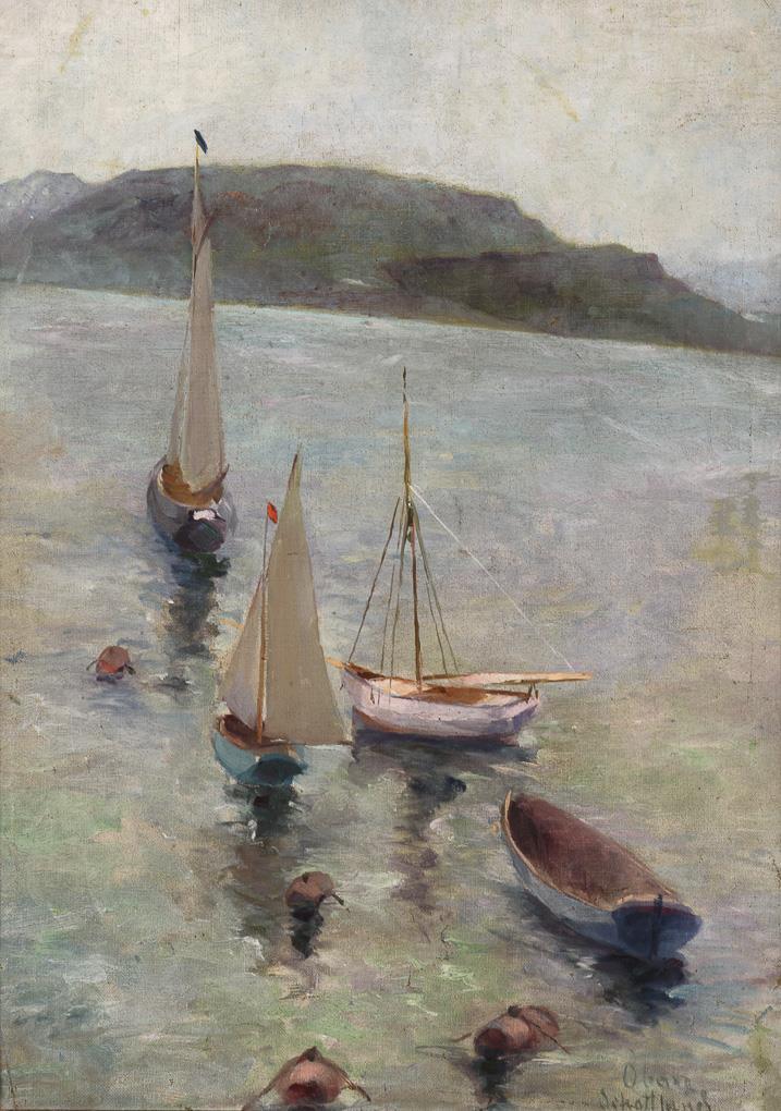 Undeutlich signiert: Segler auf ruhigem Wasser