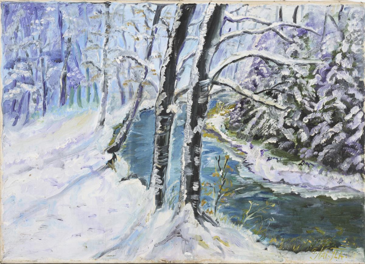 Undeutlich signiert: Winterwald