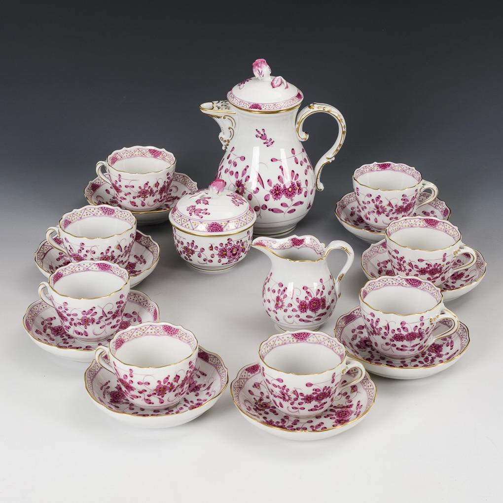 19 Teile. Form "Neuer Ausschnitt". Mokkakanne (H 16 cm), Milchkännchen, Zuckerdose, 8 Mokkatassen und 8 Untertassen. Bestoßung am Rosenknauf der Kanne und 1 Tassenrand.