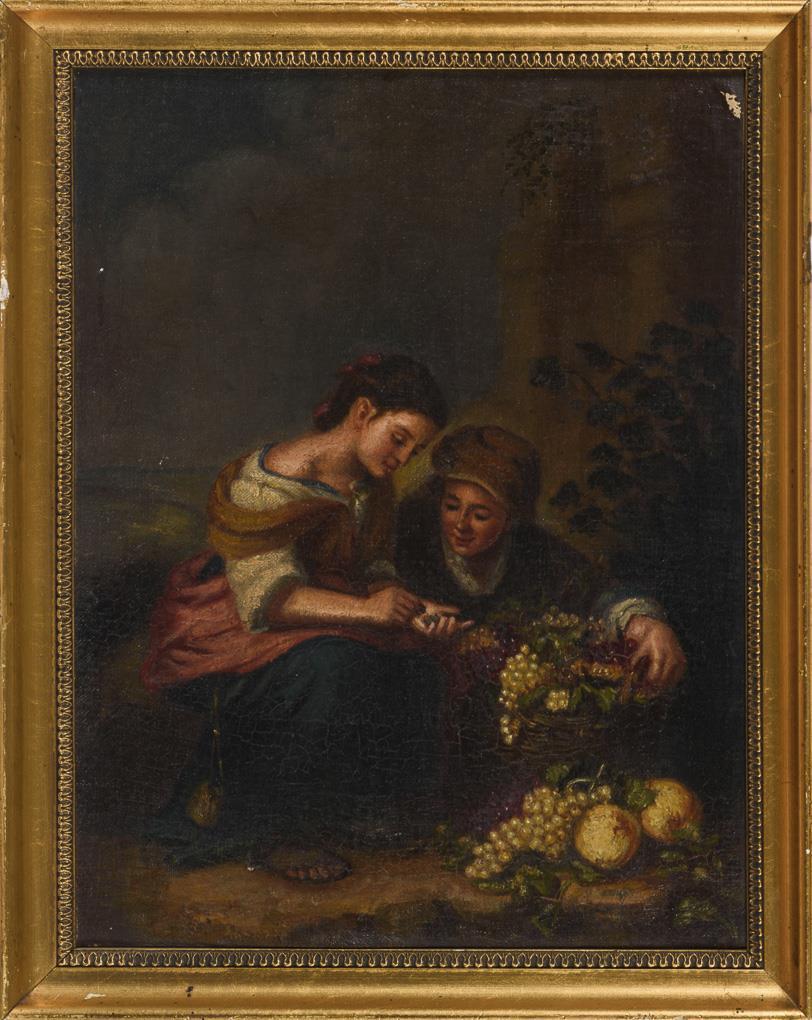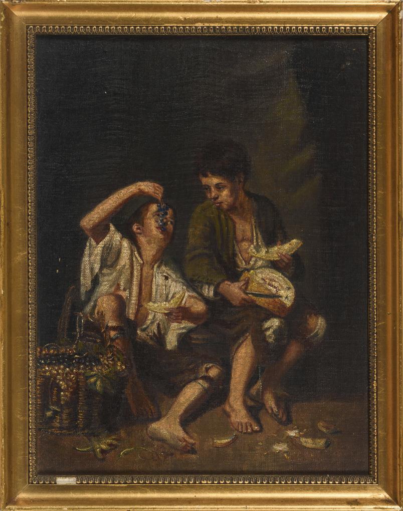 Die Pastetenesser, Trauben- und Melonenesser sowie die kleine Obsthändlerin. Altersspuren.