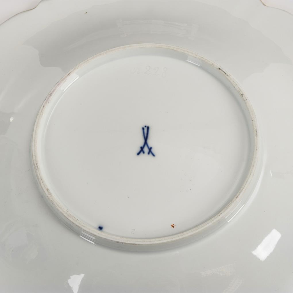 Teller mit passigem Rand und Floralrelief, im Spiegel eine Rosenblüte. Minimaler Goldabrieb.