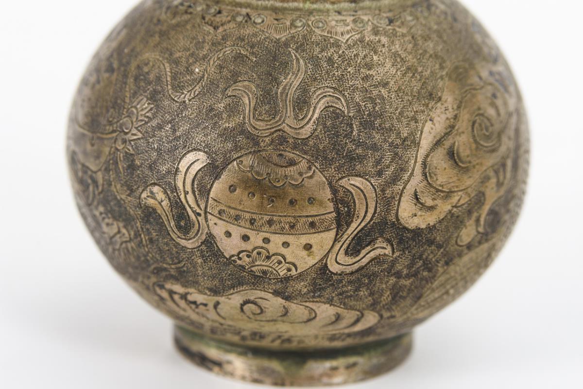 Graviertes Drachenornament und zwei kleine Handhaben, ebenfalls mit Drachenmotiv .