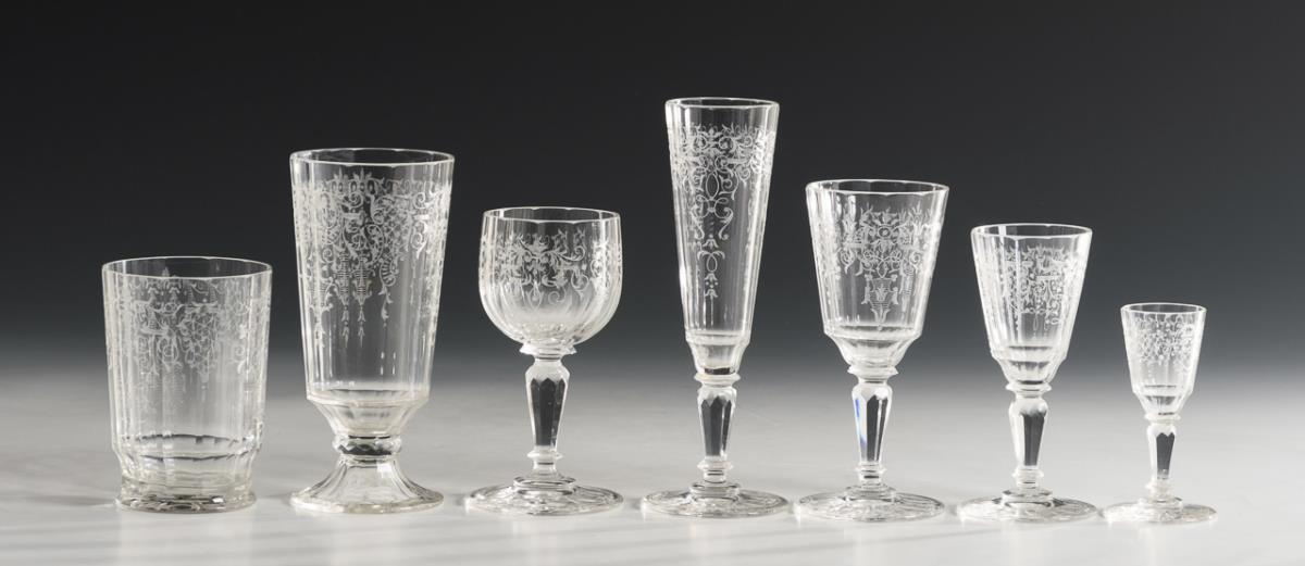 59 Gläser mit Schliffdekor. Lobmeyr.