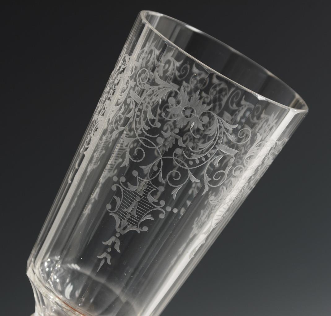 Farbloses Glas, floral-ornamental graviert. H 9-18 cm.
