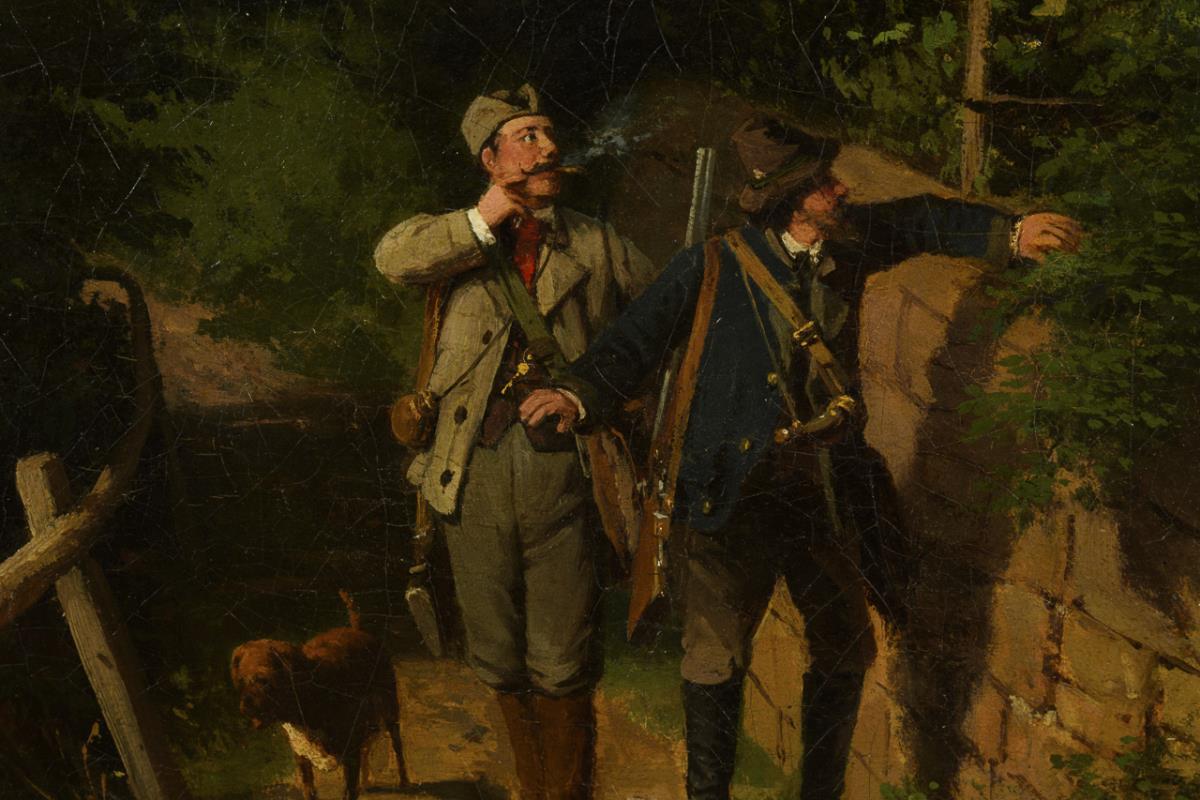 Genreszene mit Jägern und Musikantin