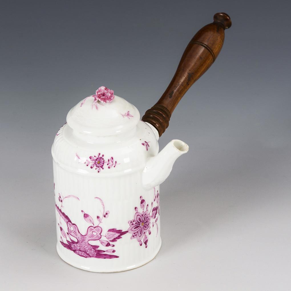 Kleines Kakaokännchen mit Purpurmalerei. Meissen.