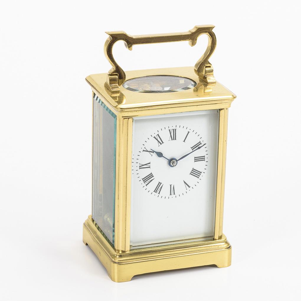 5-seitig facettiert verglastes Messing-Gehäuse mit Tragebügel.