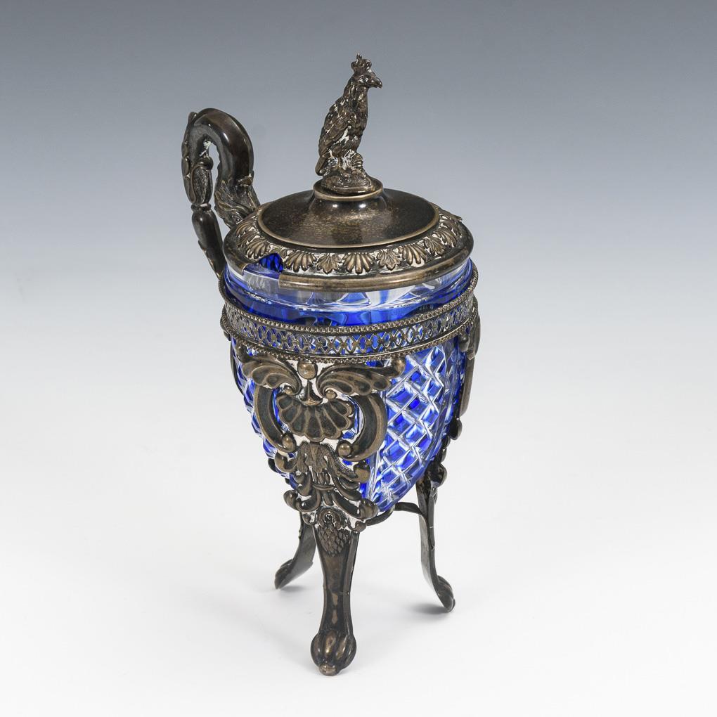 Deckelgefäß im klassizistischen Stil, Glaseinsatz mit Diamantschliff. Altersspuren.