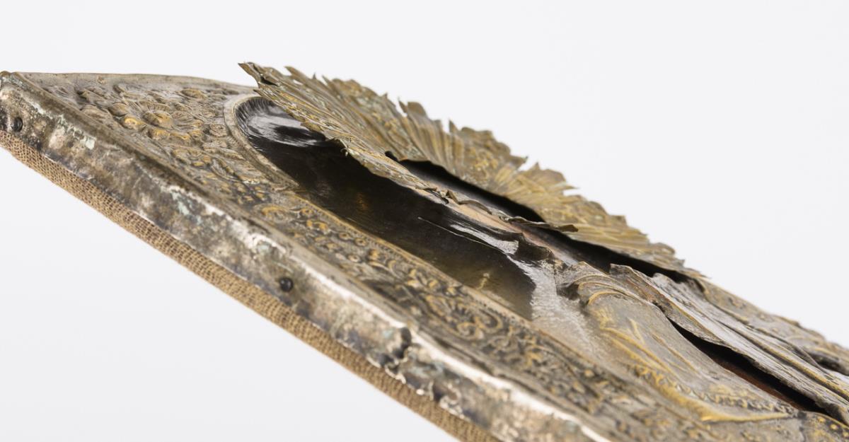 Je Eitempera/Holz, Messingoklad. Russland. 19. Jh.