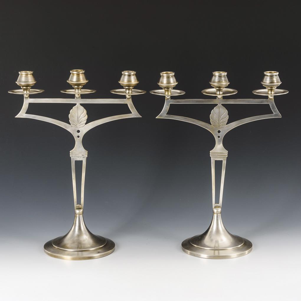 Paar 3-flammige Jugendstil-Kerzenleuchter. WMF.