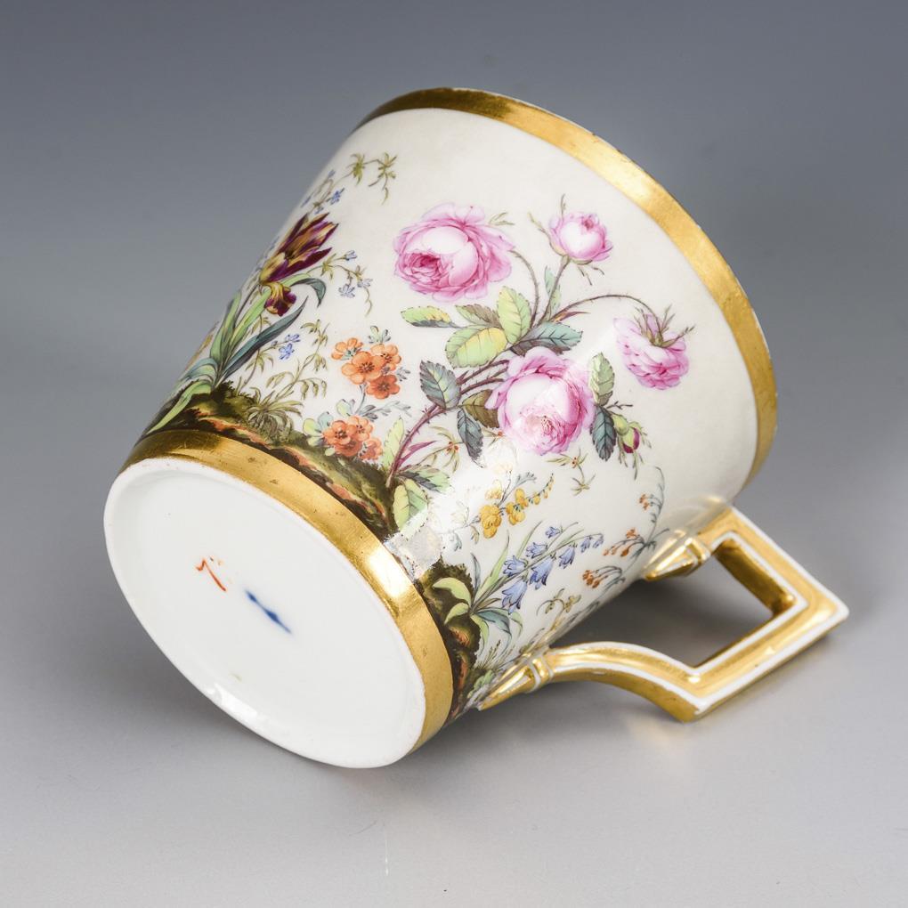 6 verschiedene Biedermeier-Vitrinentassen mit Blumenmalerei. KPM Berlin.