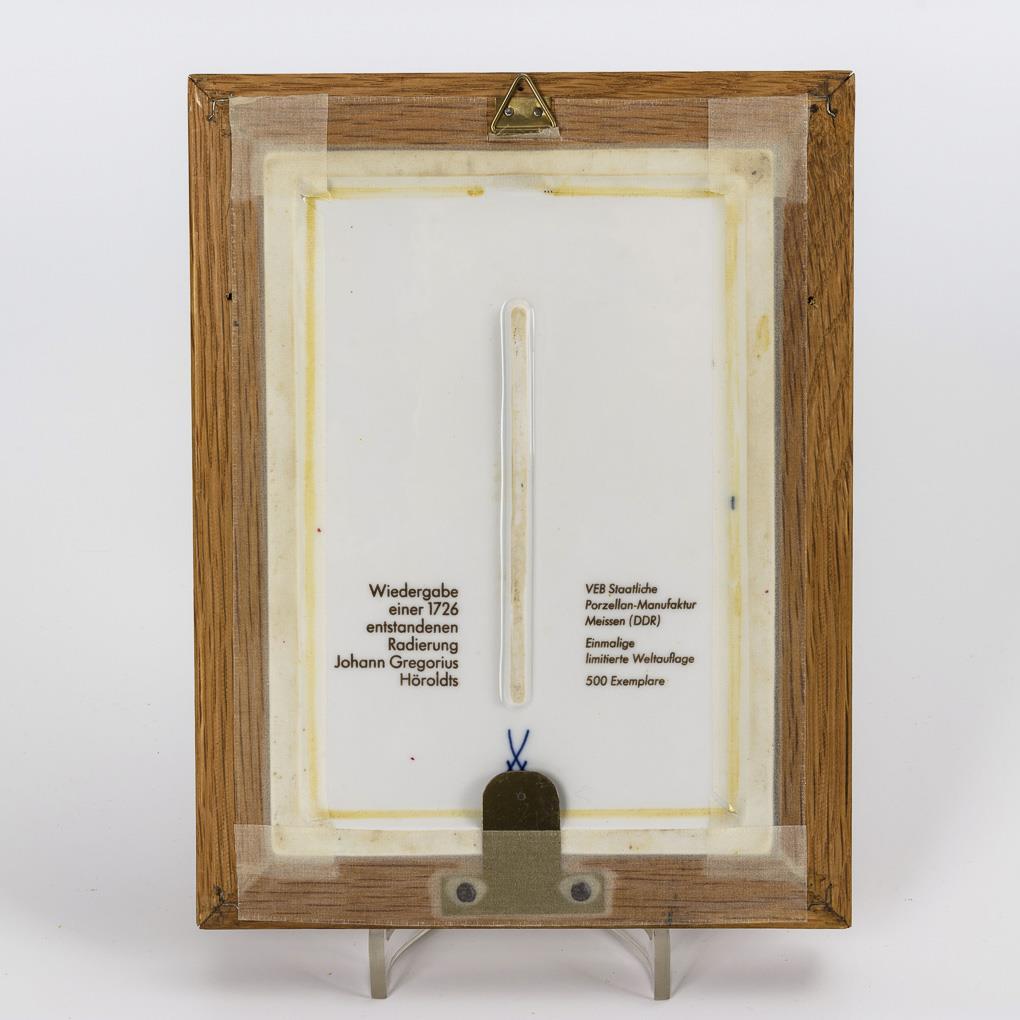 Rechteckige Platte mit der Darstellung zweier Chinesen an einem Tisch, bezeichnet "J. G. Höroldt inv. et fecit 1726", verso bezeichnet "Wiedergabe einer 1726 entstandenen Radierung Johann Gregorius Höroldts", limitierte Auflage von 500 Exemplaren.