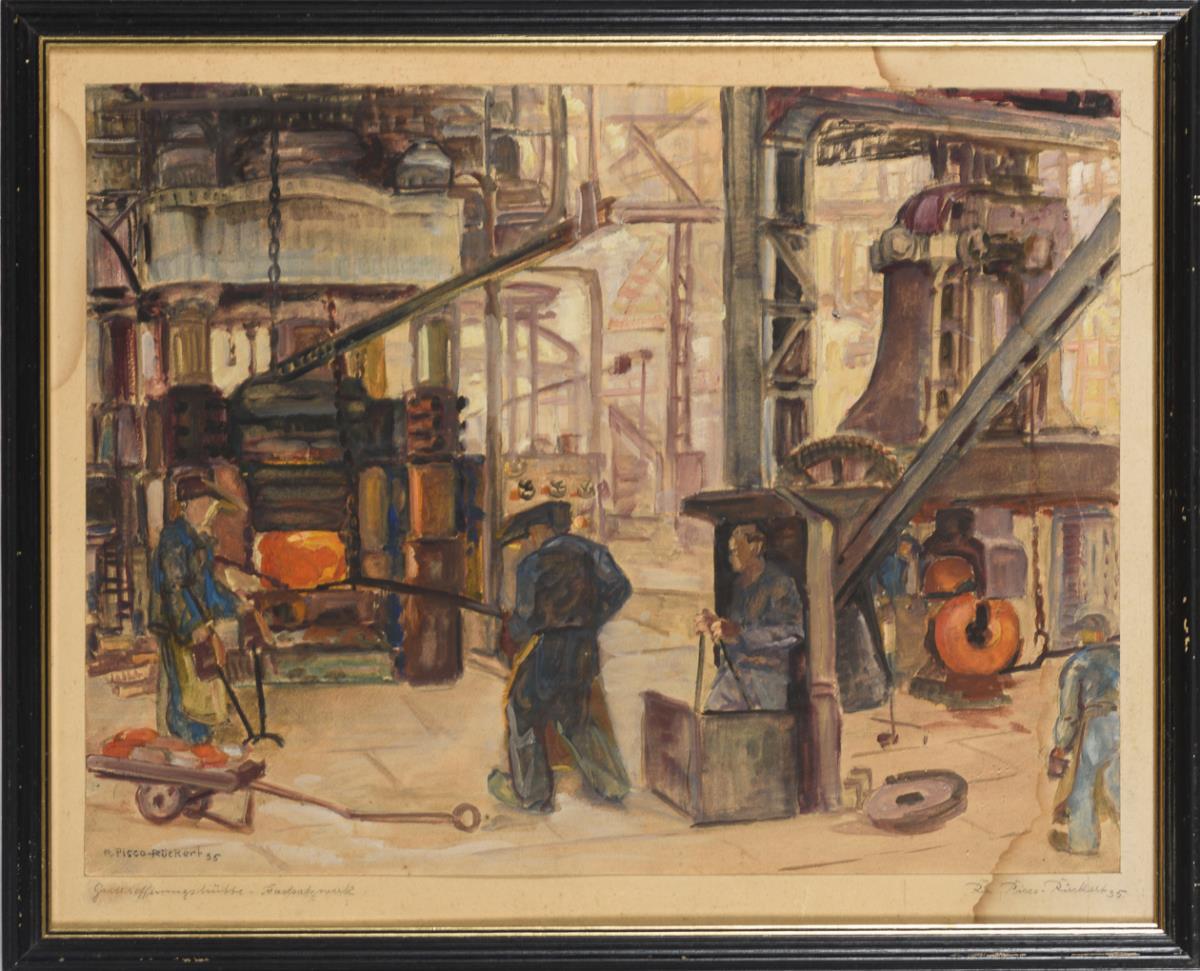 Öl/Papier. Links unten signiert mit Zusatz Gutehoffnungshütte Radsatzwerk. Datiert: (19)35.