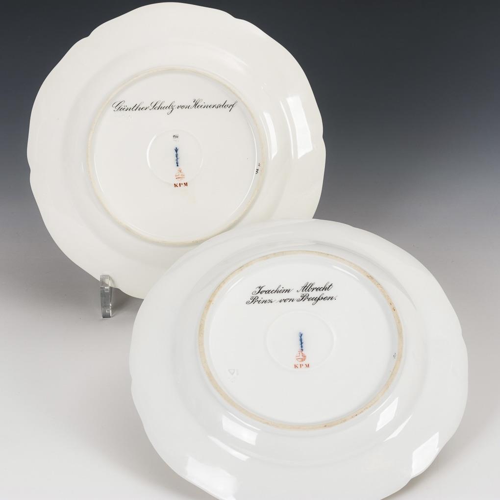 Sechspassiger Teller mit einer Wappendarstellung im Spiegel, verso bezeichnet 1x "Joachim Albrecht Prinz von Preußen" und 1x Günther Schulz von Heinersdorf.