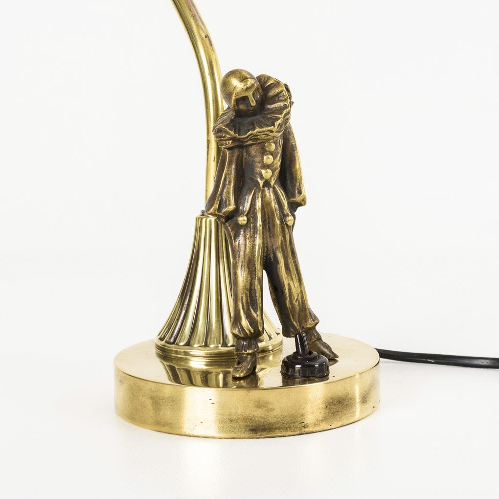 Jugendstil-Tischlampe mit Harlekin. Lötz.