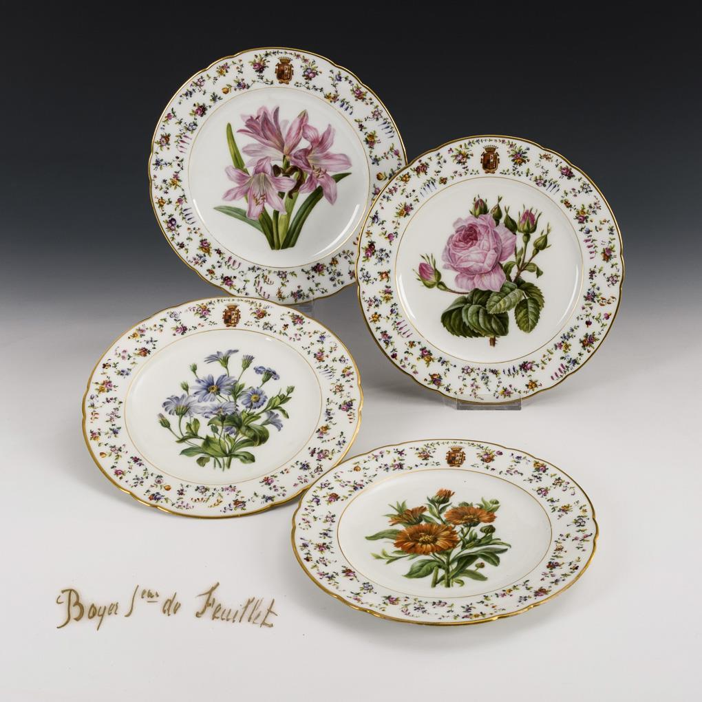 4 Teller mit Blumenmalerei und Wappen. Paris.