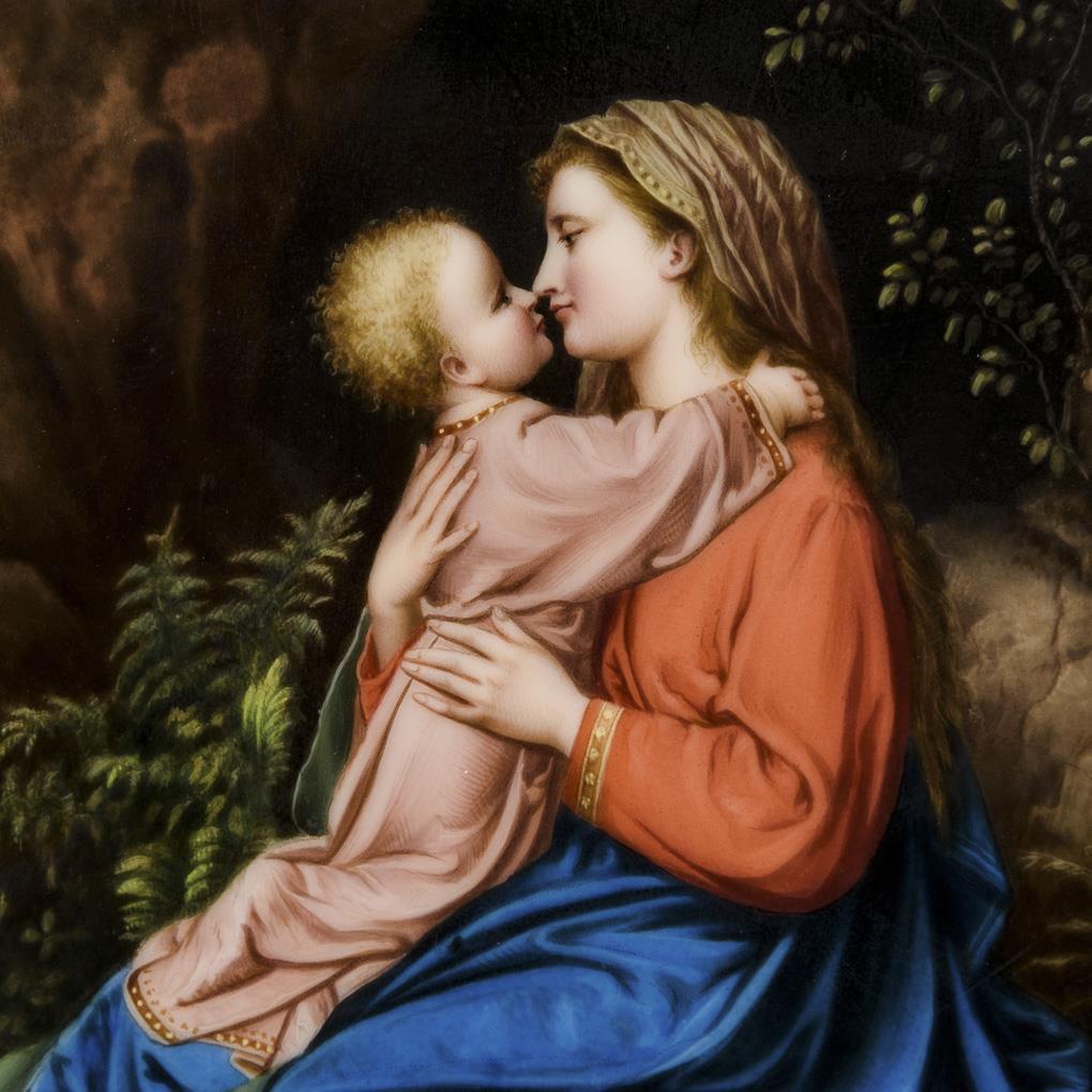 Porzellangemälde: Maria mit Kind.