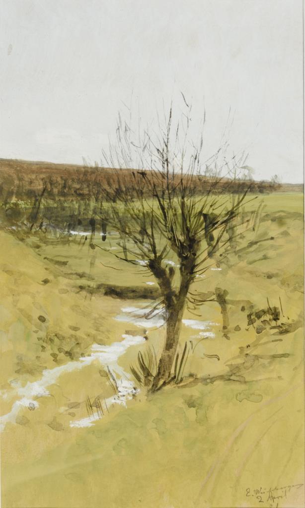 Aquarell, weiß gehöht.Rechts unten signiert.Datiert: 2. April (19)01.