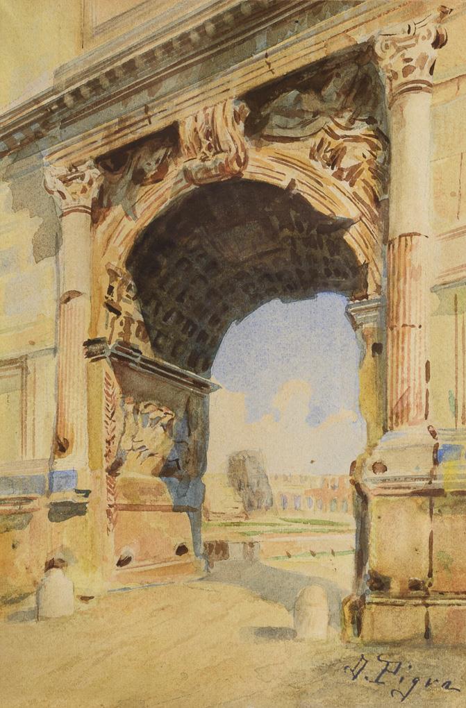 Italienischer Künstler: Titusbogen und Kolosseum