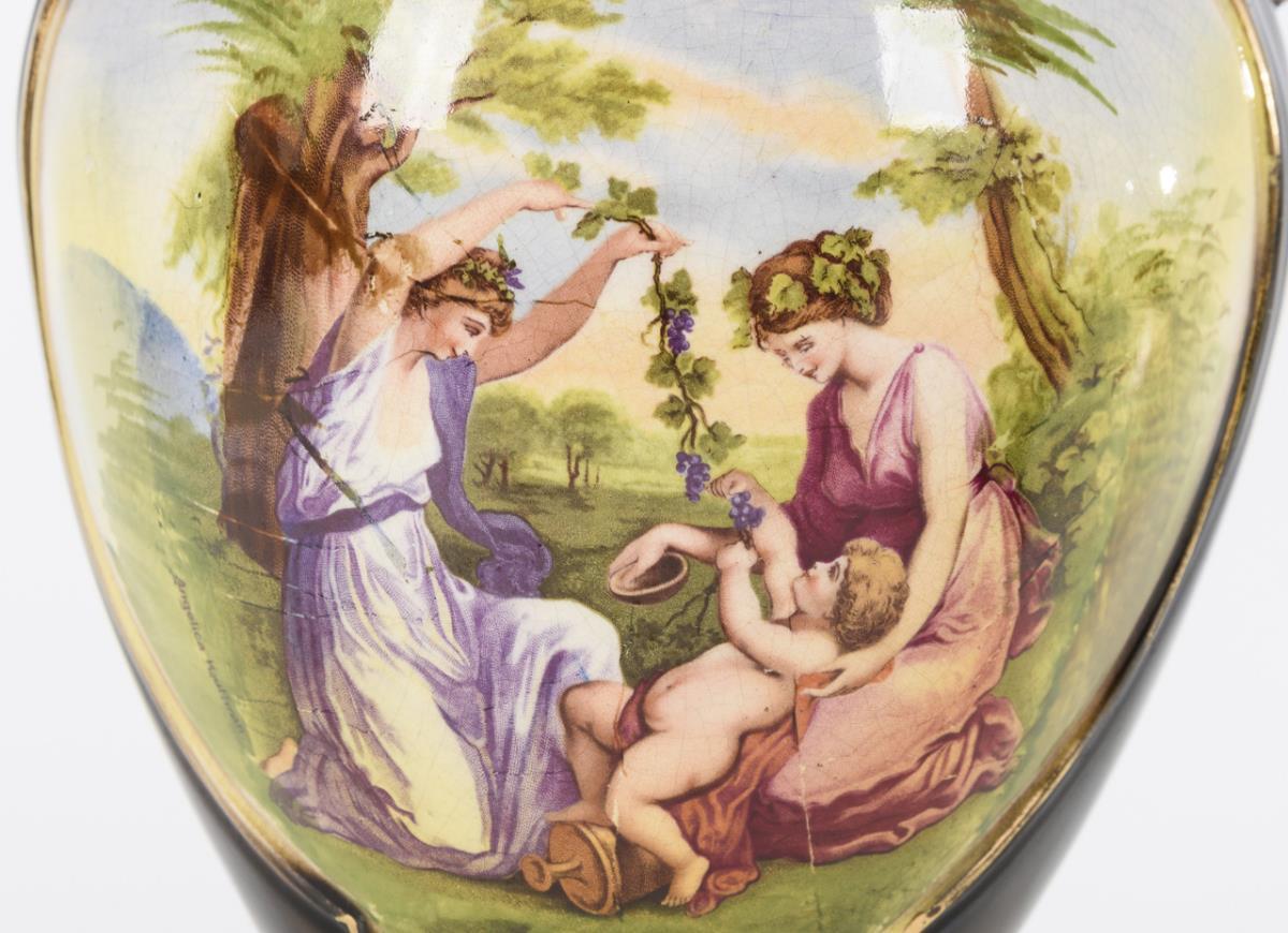 Reliefierte Balusterform mit 2 Handhaben und Rundfuß, schauseitig antikisierende Figurenszenen, bezeichnet "Angelica Kauffman". Leicht goldberieben.