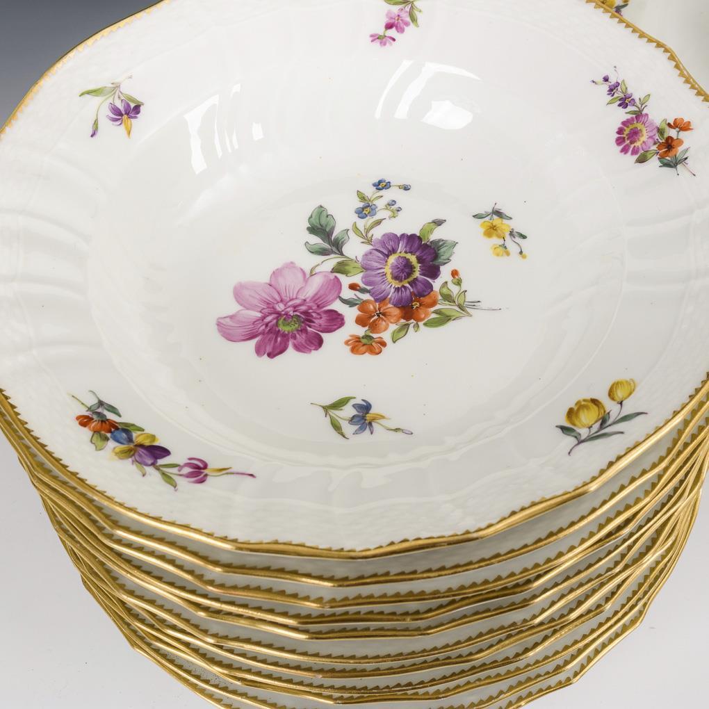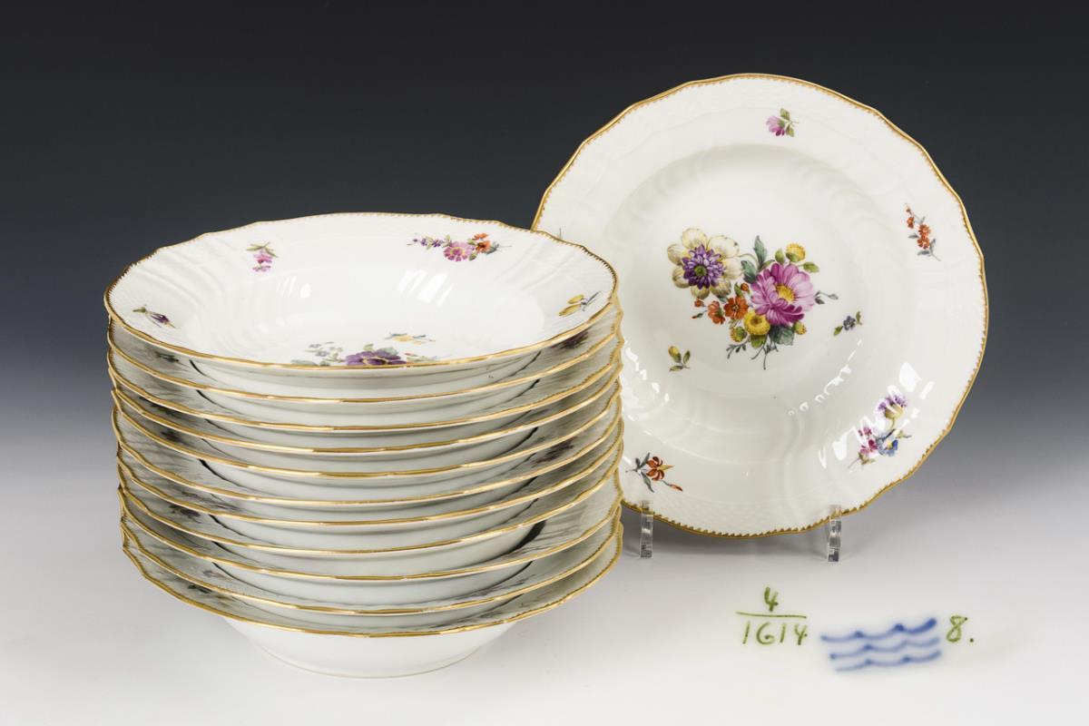 12 Suppenteller mit Blumenmalerei. Royal Copenhagen.
