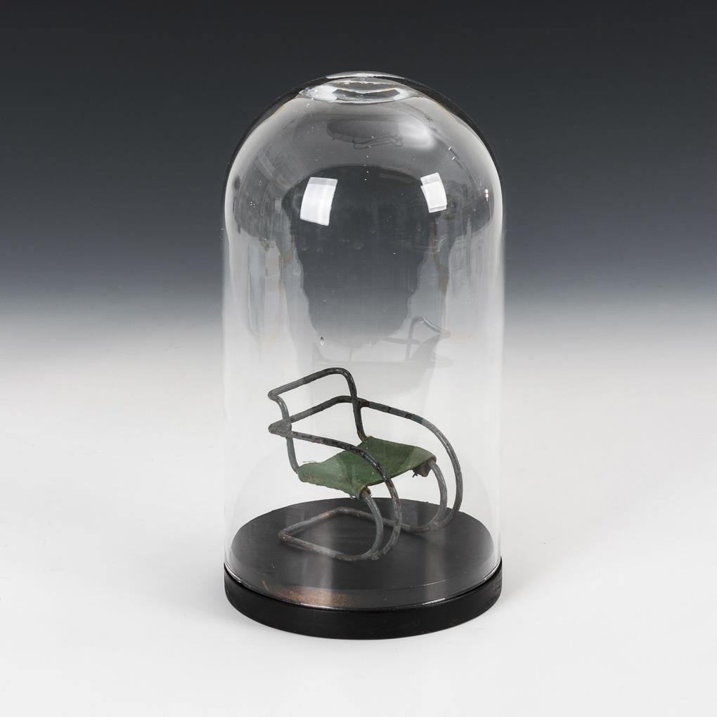 Nach dem Entwurf von 1927 gefertigtes Modell unter ergänztem Glassturz. Gebrochene Schweißstelle am unteren Lehnenansatz, stärkere Alters-/Gebrauchsspuren.