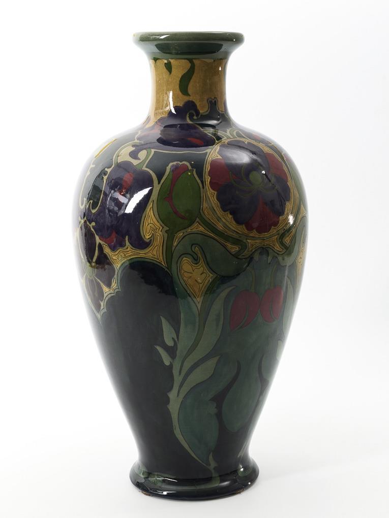 Große Jugendstil-Balustervase mit Blumenmalerei. Gouda.