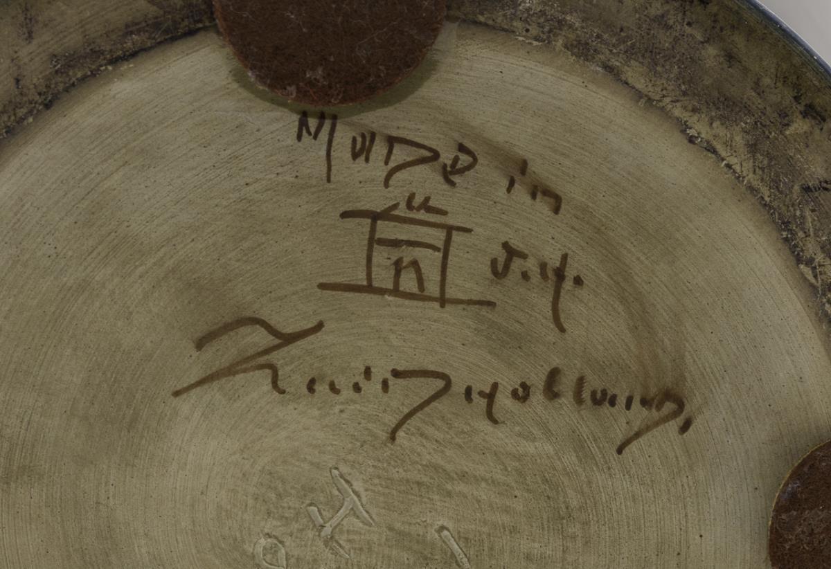 Lazarusmarke "Made in Zuid Holland", Monogramm "J. v. L." (wohl Johannes van Leeuwen, von 1920 bis 1938 tätig bei Plateelbakkerij Zuid-Holland in Gouda). Modellnr. 175, Ritzzeichen Ho.