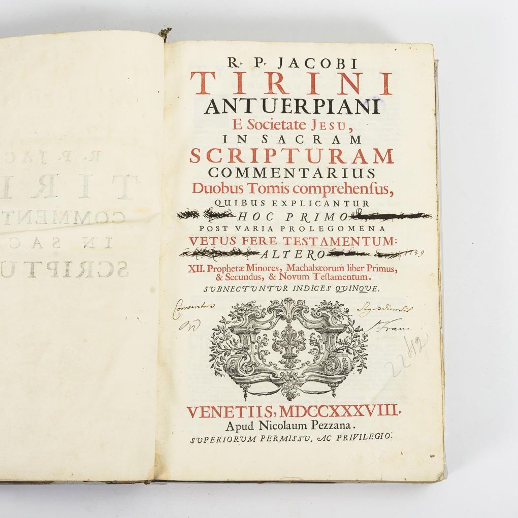 "Duobus tomis comprehensus, quibus explicantur, hoc primo post varia prolegomena vetus vere testamentum: altero XII. Prophetae Minores, Machabaeorum liber Primus & Secundus, & Novum testamentum.".