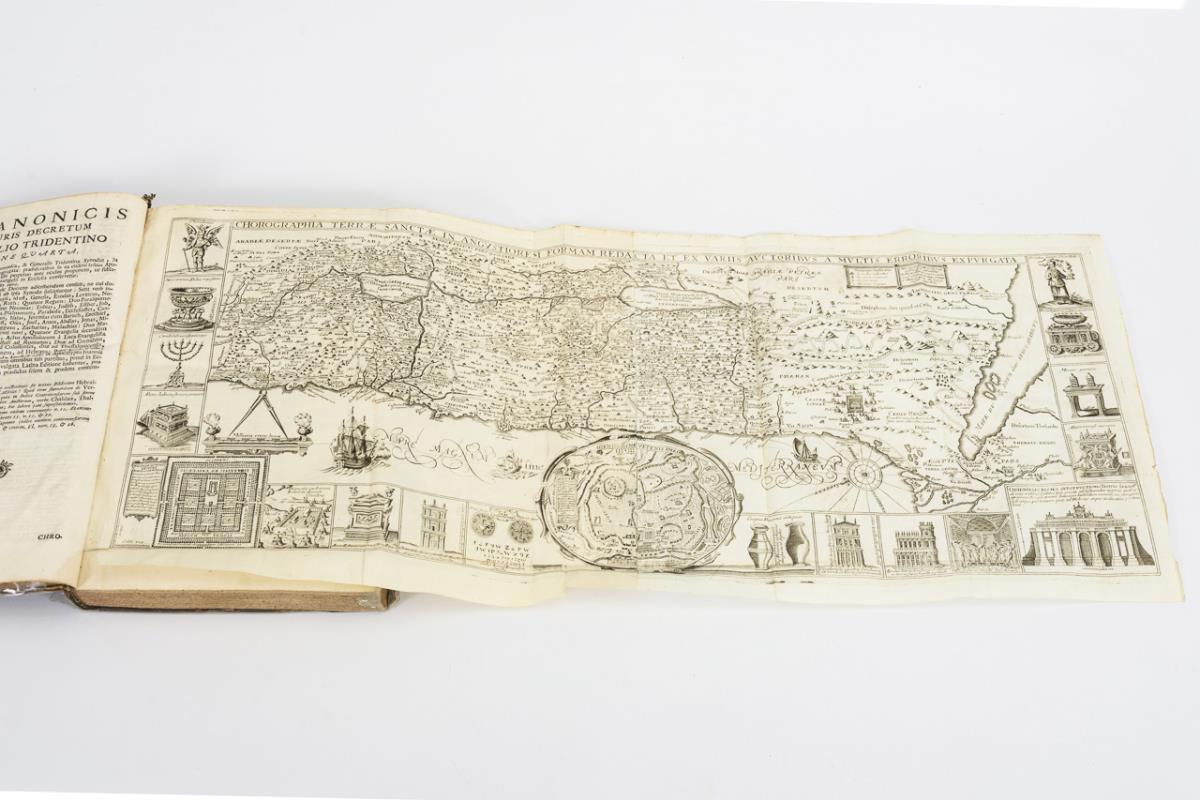 Titelblatt, (8), große Karte des Heiligen Landes, 63, (1), 432 Seiten und 6 Tafeln. Ledereinband. Im Vorsatz und Titel handschriftliche Vermerke, Altersspuren.
