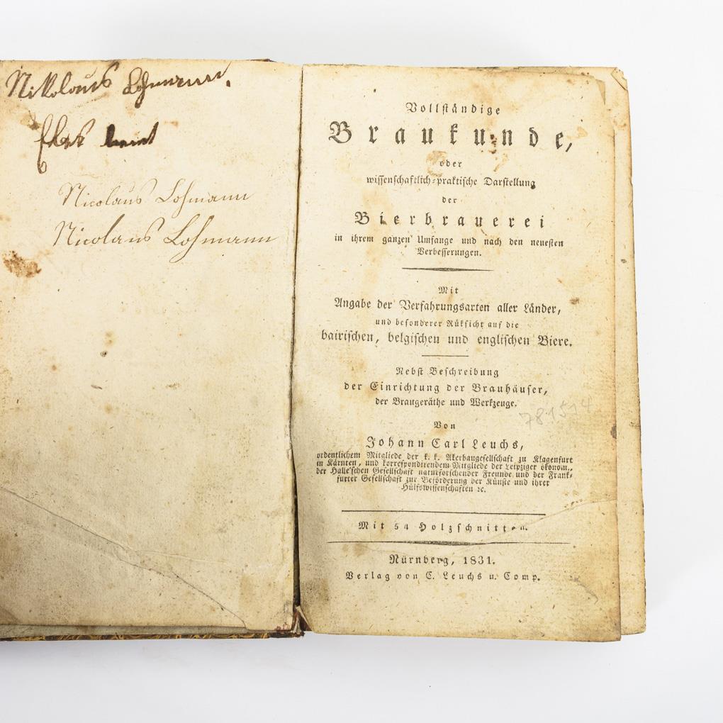 "... oder wissenschaftlich-praktische Darstellung der Bierbrauerei ... mit Angaben der Verfahrungsarten aller Länder, und besonderer Rücksicht auf die bairischen, belgischen und englischen Biere. Nebst Beschreibung der Einrichtung der Brauhäuser, der Braugeräthe und Werkzeuge".