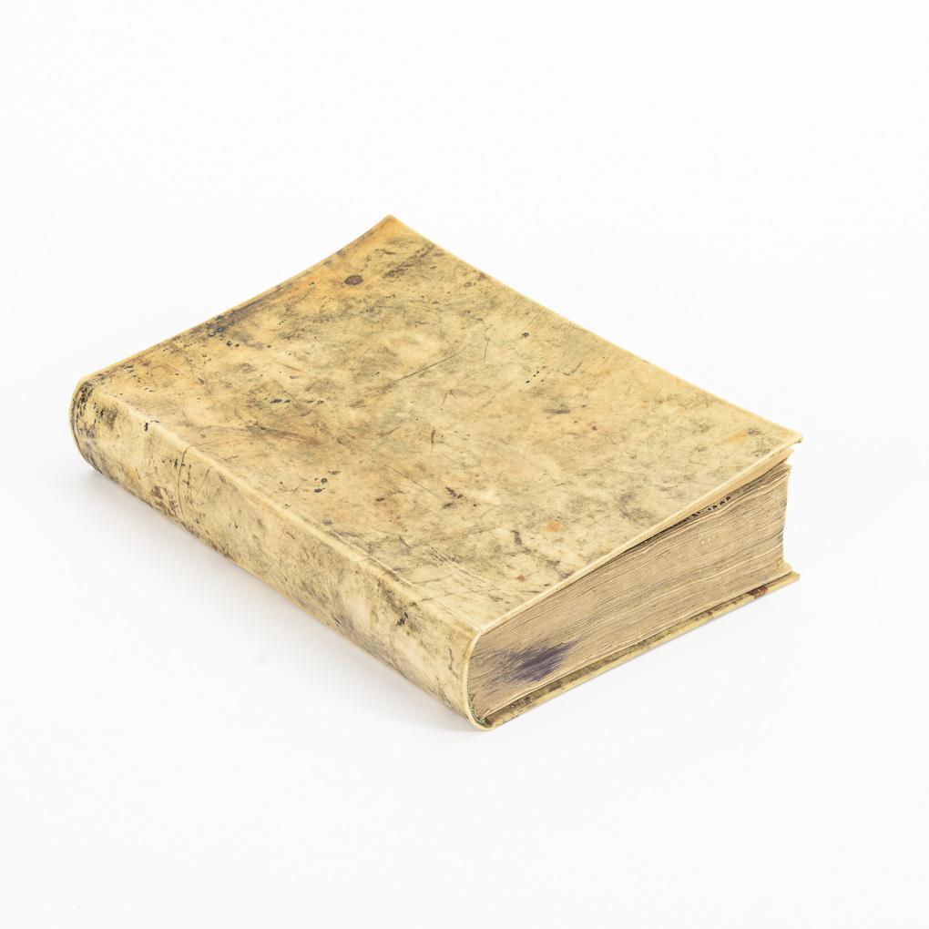 Titelblatt, (88) Seiten, 240 Blatt. Alter Pergamenteinband, jünger nachgebunden, Vorsatzblatt erneuert, dadurch Block etwas beschnitten. Altersgemäß gute Erhaltung.